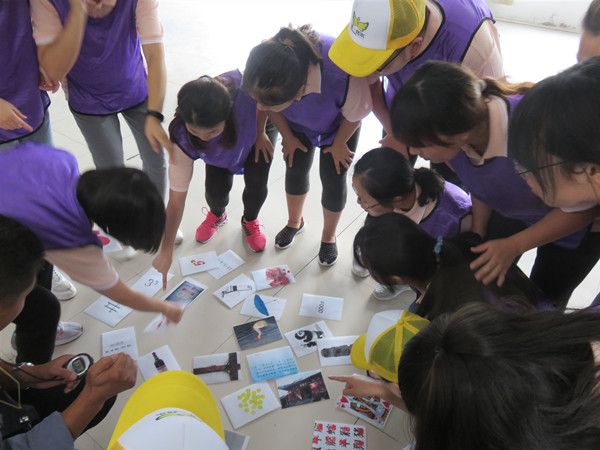 我主动要求作为团队捡卡片的那个人,在讨论时间,我们先商量好了对策:先试一下,从1开始找,找到了就记住什么图片代表什么数字,大家一起记,当我要找什么数字的时候,伙伴们指出来我拿就行了。第一次的体验,我快速进入圈内,想快速的找到我想要的数字,但怎么也找不到,队友们也不知道是哪个,整个场面很乱。60秒时间到了,我们只找到了6张。