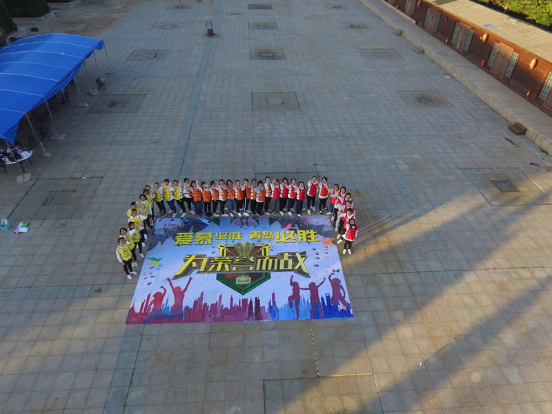 6、全体成员围在巨画四周,摆拍、合影。